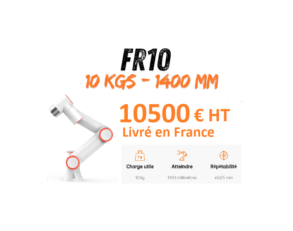 Conçu pour manipuler des objets plus lourds, le FR10 est idéal pour les tâches industrielles nécessitant un robot capable de soulever et manipuler des charges importantes tout en restant sécurisé.